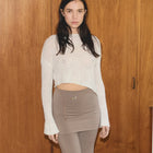 A light wool blend with effortless drape and modern refinement. With a high neckline, softly flared bell sleeves and an asymmetric hem, this throw-on piece adds quiet drama to any look, layered up or pared back.