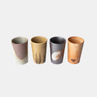 A set of four handcrafted straight-side ceramic cups, designed for everyday use with coffee, tea, or cold drinks. Each cup features a different glaze — from earthy tones to darker finishes — creating a unique and well-balanced collection.