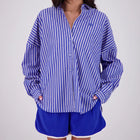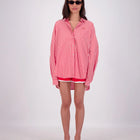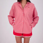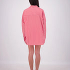 The Mahalo Shirt features an oversized relaxed fit with an embroidered patch pocket, front button-down placket, button-up cuffs, and curved scoop hem for casual yet polished style.